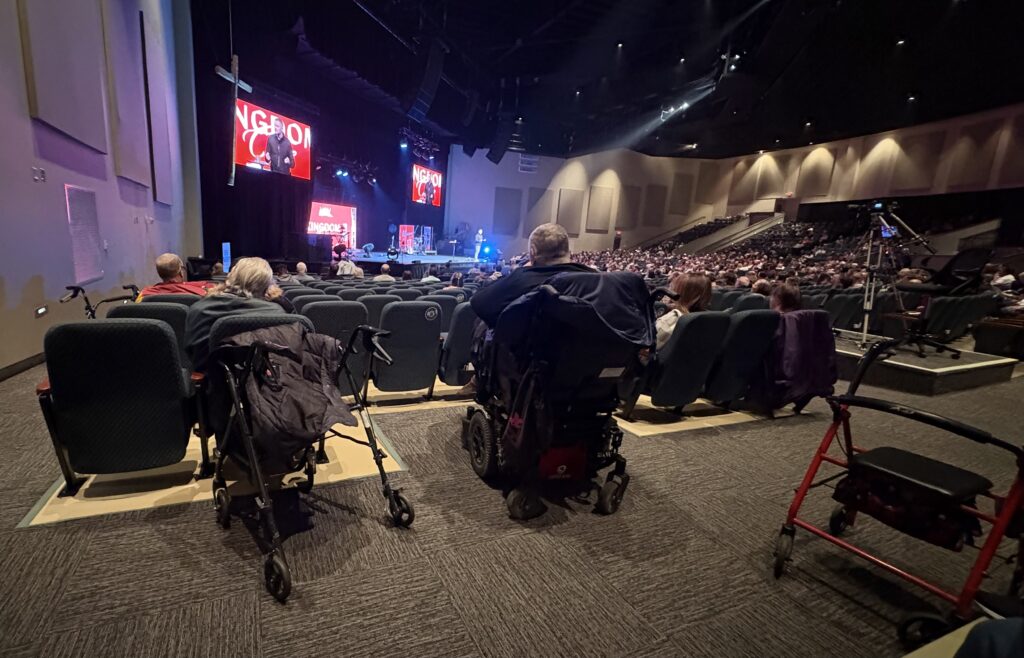Image Description: A group of people stand together indoors; some have their hands raised and appear to be singing or celebrating, while others are seated or looking at their phones.